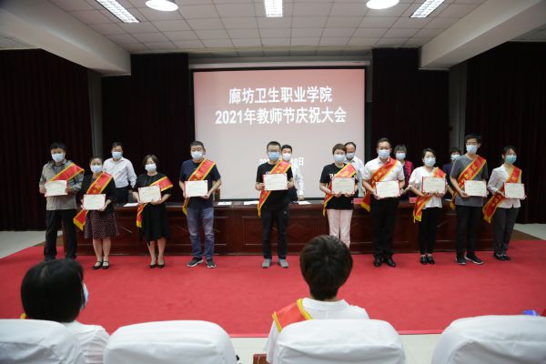 会上,副院长王泽泉宣读《中共廊坊卫生职业学院委员会关于表彰2021年优秀教师、优秀教育工作者表彰的决定》。与会领导为10位优秀教师和10位优秀教育工作者颁奖。医学技术系教师党支部书记纪晓花、招生就业办负责同志武刚分别作为优秀教师代表和优秀教育工作者代表作典型发言。
