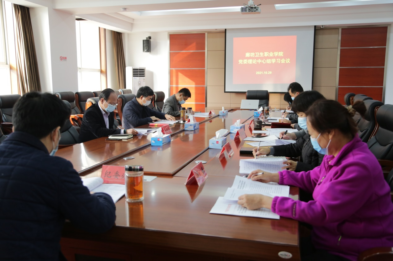10月29日,学院召开党委理论学习中心组学习会议,学院党委书记曹希恩主持会议,党政领导班子成员、党政办公室、组织人事处及纪委办公室主要负责同志参加会议。