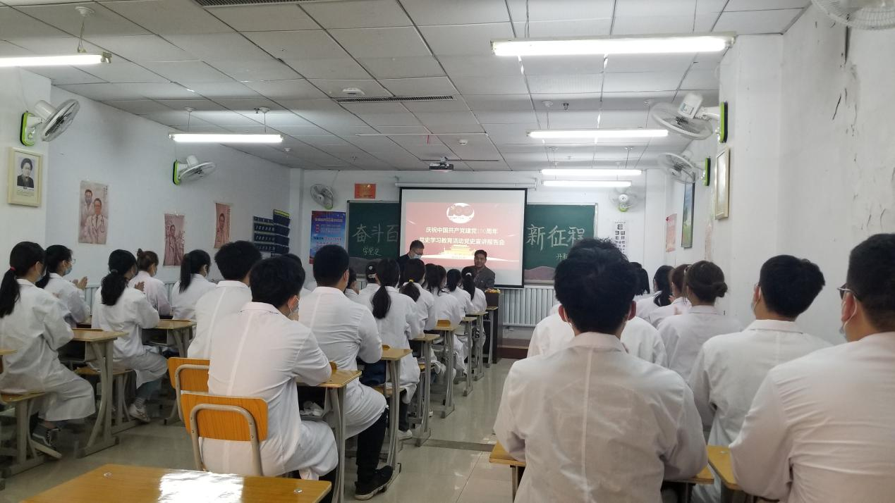 按照学院党委党史学习教育集中宣讲工作安排,4月20日上午,学院党委副书记、院长刘更新为临床医学专业2019-5 班学生作党史宣讲报告。