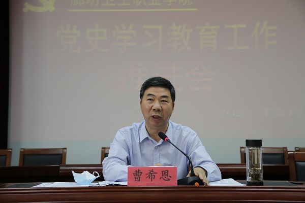 5月21日上午,学院党史学习教育推进会在学术报告厅举行。党委书记曹希恩出席会议并做重要讲话,党委副书记、院长刘更新主持会议。