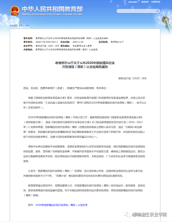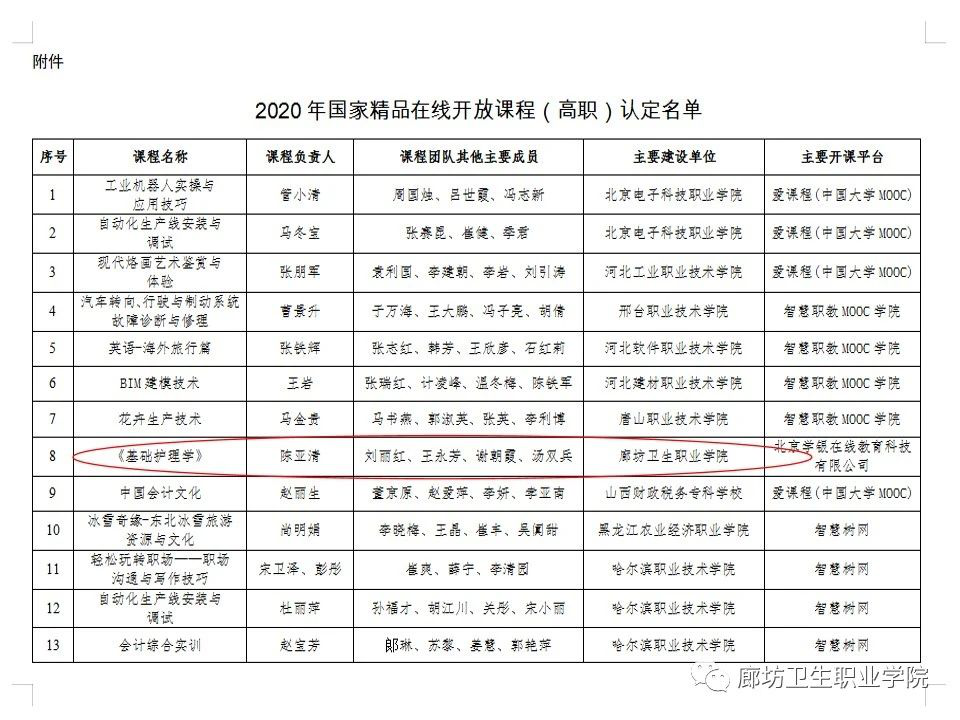 喜报:热烈祝贺护理系《基础护理学》被教育部认定为2020国家精品在线开放课程!