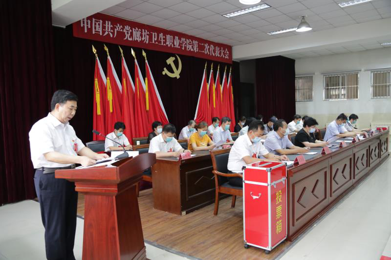 根据省、市委关于高校换届工作的统一部署,中国共产党廊坊卫生职业学院第二次代表大会于6月29日—30日召开。大会的主题是:高举中国特色社会主义伟大旗帜,深入学习贯彻习近平新时代中国特色社会主义思想和党的十九大、十九届二中、三中、四中全会精神,贯彻全国教育大会精神,不忘初心、牢记使命、忠诚担当、立德树人,努力推动学院高质量发展!
