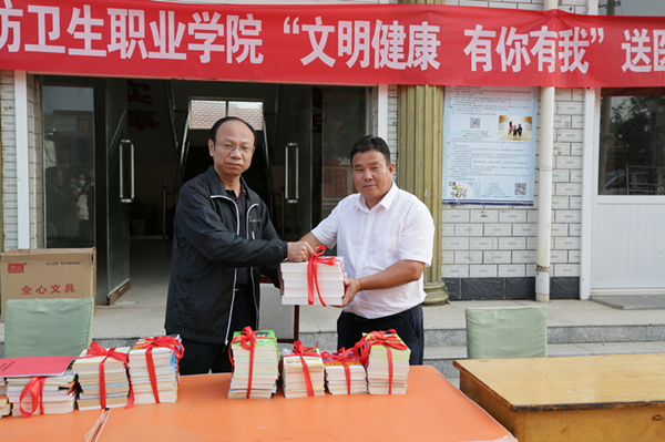 为贯彻落实廊坊市文明办关于开展文明单位城乡共建、结对帮扶活动的通知(廊文明办〔2020〕18号)要求和市委宣传部关于积极推进习近平新时代中国特色社会主义思想“六进”工作部署,扎实做好对口思想扶贫、文化扶贫、健康扶贫工作。9月25日,党委副书记马利国带队一行8人到大城县广安镇仝庄子村,为村民们捐赠图书、提供义诊、免费测量血糖、血压等健康体检和咨询服务。