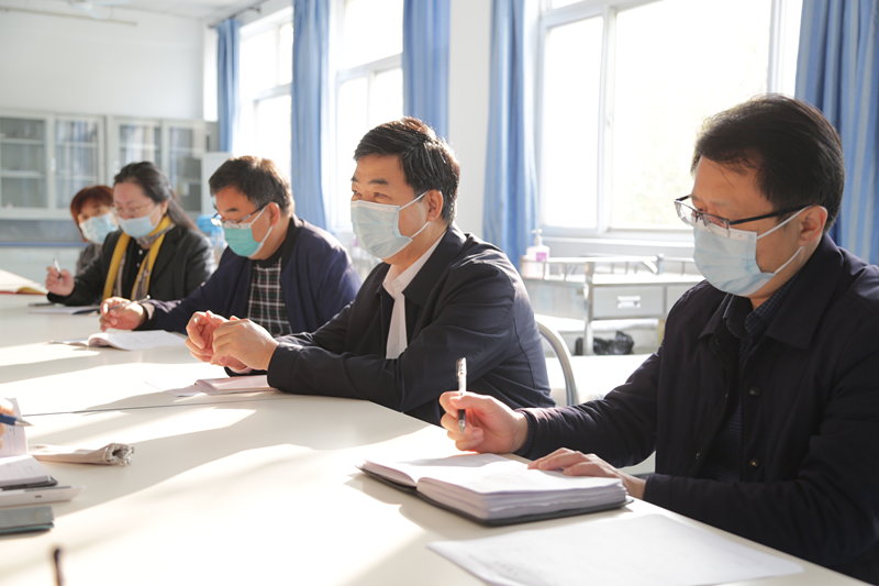 曹希恩同志认真听取了护理系工作汇报,对护理系工作取得的成绩给予了充分肯定,就贯彻落实好党的十九届五中全会精神,提升护理专业建设水平、当好学院改革发展排头兵提出明确要求。曹希恩指出,近年来,护理系坚持党委领导,落实立德树人根本任务,持续加强护理骨干专业建设,深化“三教”改革,护理专业被教育部认定为国家级骨干专业,《基础护理学》在线课程被教育部评定为国家级精品在线课程,护理专业学生在全国职业院校护理专业技能大赛河北省试点赛当中荣获一等奖,迈出了学校内涵建设、质量提升的坚实第一步,实现了学院国家级荣誉的新突破,为全院各教学管理单位、各部门树立了榜样。曹希恩强调,护理系要深入学习贯彻习近平新时代中国特色社会主义思想和党的十九届五中全会精神,带头贯彻新发展理念,围绕实现高质量发展,搞好系部规划,更新办学理念,深化教学改革,深化校院(企)合作,加强专业建设、课程建设、师资队伍建设、实训基地建设,促进学生全面发展,提升学生就业质量,提高专业服务护理、健康、养老、托育等健康产业和现代服务业水平,当好学院内涵发展、特色发展、高质量发展的排头兵。曹希恩强调,各级各部门要学习护理系改革创新、开拓进取、攻坚克难、团结拼搏、无私奉献的崇高精神,加强干部队伍、教师队伍建设,加强作风建设,凝聚工作合力,深化改革创新,提升工作水平。要加大对护理专业(群)等重点专业建设资源要素支持力度,在政策上予以倾斜,在资金、师资、场地和设施设备上重点保障,以重点专业示范带动相关专业,实现学院内部增值赋能、提质培优。曹希恩指出,目前已经进入冬季,校园疫情防控任务艰巨,各级各部门要克服麻痹大意思想,站在讲政治的高度上全面落实疫情防控措施,加强防疫常识宣传教育,加强健康管理和联防联控,加强环境消毒通风,完善应急处置预案,加强值班值守,实现新冠肺炎疫情、结核病、冬季流感和诺如病毒等传染病同防同控,坚决保证师生生命安全和身体健康。要关心学生身心健康,关注学生学习生活,提高后勤保障服务质量,改善学习生活条件,优化教学和学生管理,稳定校园物价,保证食品卫生安全、消防安全和实验室安全,维护校园和谐稳定。