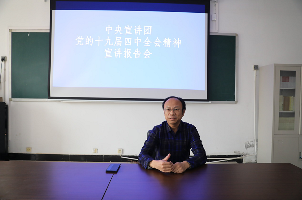 11月21日,廊坊卫生职业学院组织科级以上干部和师生代表集中收看中央宣讲团成员、中央政策研究室原副主任施芝鸿同志作的关于十九届四中全会精神的宣讲报告会视频。