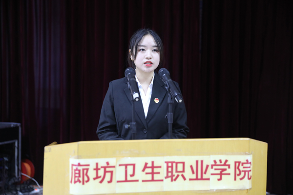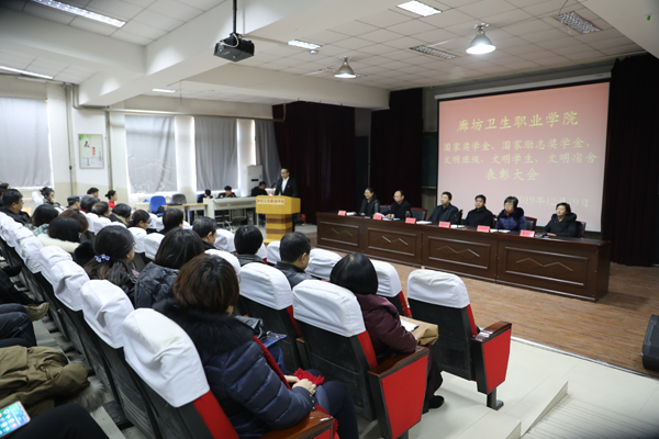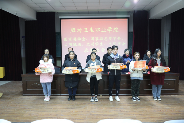 副院长彭丽红同志于会上宣读《廊坊卫生职业学院关于对2018/2019学年国家奖学金、国家励志奖学金获得者的表彰决定》及《2019年获得文明班级、文明学生、文明宿舍的表彰决定》。随后,学院领导分别为国家奖学金、国家励志奖学金获奖代表,“文明班级”、“文明学生”、“文明宿舍”代表颁奖。国家奖学金获奖代表刘智同学、国家励志奖学金获奖代表白杨同学分别作出表态发言,对在自己成长过程中给予过帮助的老师、同学、父母表达了感谢,同时表达了今后继续积极向上、再接再厉的决心。