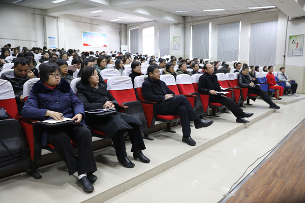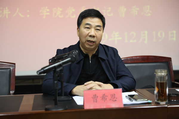 党委书记曹希恩同志就党的十九届四中全会精神做宣讲报告。曹书记讲到,党的十九届四中全会专题研究坚持和完善中国特色社会主义制度、推进国家治理体系和治理能力现代化问题并作出决定,体现了以习近平同志为核心的党中央高瞻远瞩的战略眼光和强烈的历史担当,为新时期我国全面深化改革指明了总方向,对决胜全面建成小康社会、全面建设社会主义现代化国家,对巩固党的执政地位、确保党和国家长治久安,具有重要的现实意义。