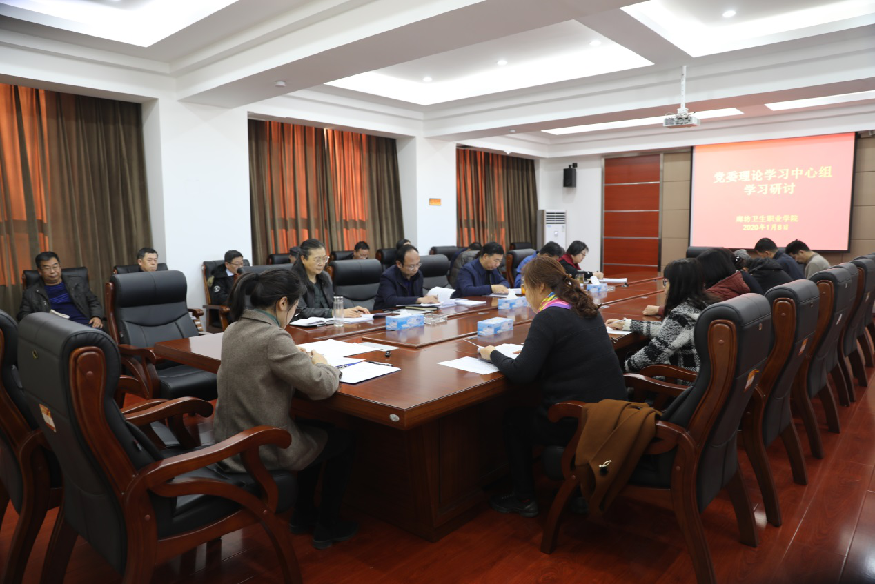 1月8日下午,党委书记曹希恩主持召开学院党委理论学习中心组学习(扩大)会议,学习习近平总书记2020年新年贺词和习近平总书记在中央政治局第十九次集体学习时的重要讲话精神、习近平总书记在第24期《求是》杂志发表的重要文章《推动形成优势互补高质量发展的区域经济布局》、《河北省学校安全条例》和省委九届十次全会精神,传达学习省、市委相关文件精神,安排部署贯彻落实意见。