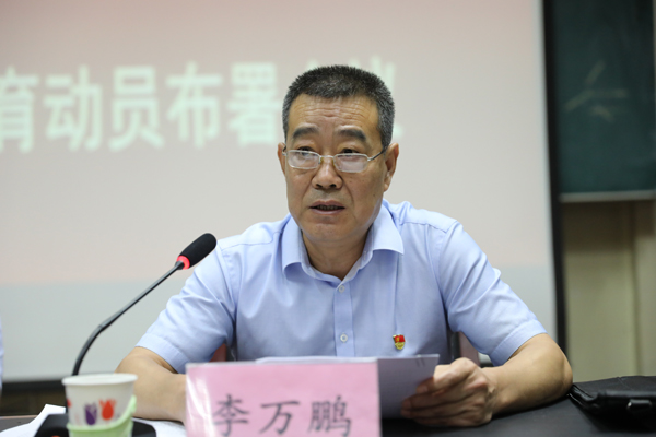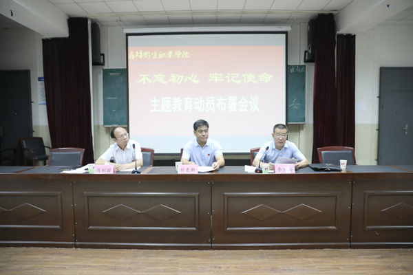 9月12日下午,我院在学术报告厅召开“不忘初心、牢记使命”主题教育动员部署会,党委副书记、院长刘更新作动员讲话,对全院开展主题教育工作进行部署。市委巡回指导组组长李万鹏出席大会,对学院开展主题教育提出要求。学院领导班子成员、全体副科级以上干部及全体党员参加大会。党委副书记马利国主持会议。