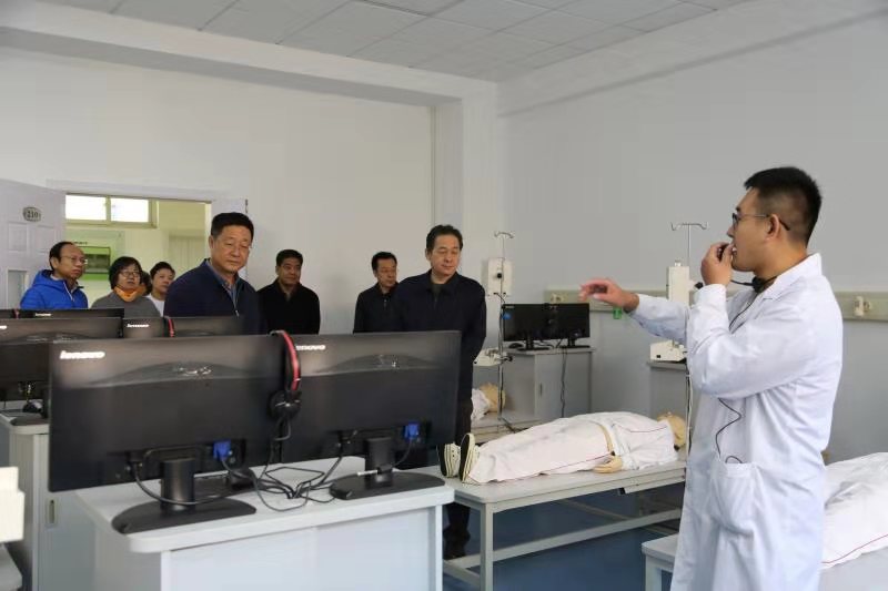王廷山一行先后参观了学生食堂、学生公寓、护理示教楼和现代教育综合楼,听取了学院党委副书记、院长刘更新同志关于深入开展主题教育,改进和提高党建、思政、意识形态、安全稳定、食品卫生安全和学生资助工作情况的汇报,详细了解了学院在猪肉制品价格上涨期间平抑肉菜价格、食品卫生安全管理、保障学生公寓消防安全等方面的具体措施,并就贯彻落实陈希同志在部分中管高校主题教育座谈会上的讲话精神,提高人才培养能力,强化学科专业服务行业和产业发展进行了交流。