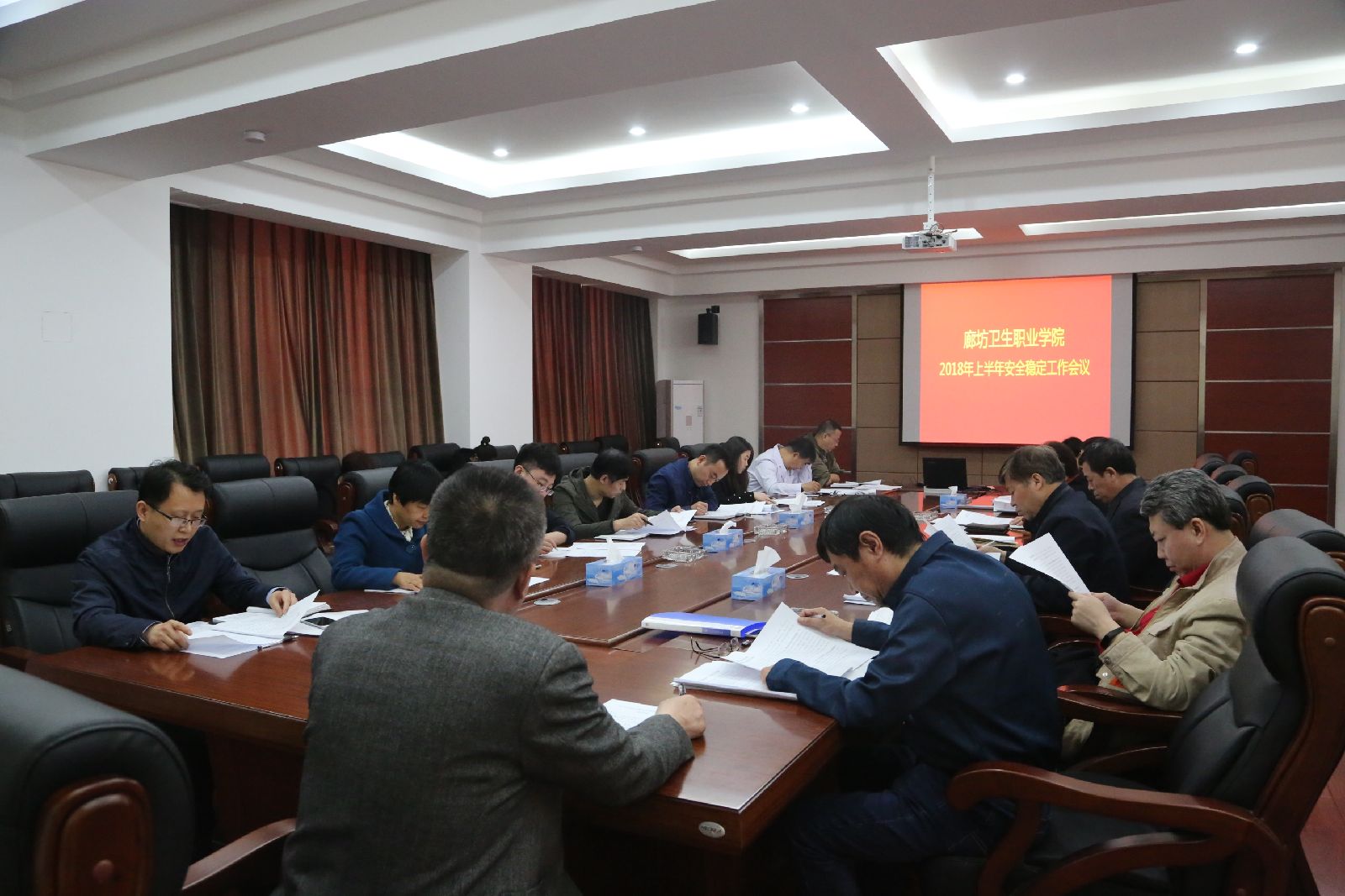 3月27日,学院召开安全稳定工作议,部署2018年上半年安全稳定重点工作,就做好联系退役军人包联工作、“黑摩的”及共享单车清理取缔工作进行动员。