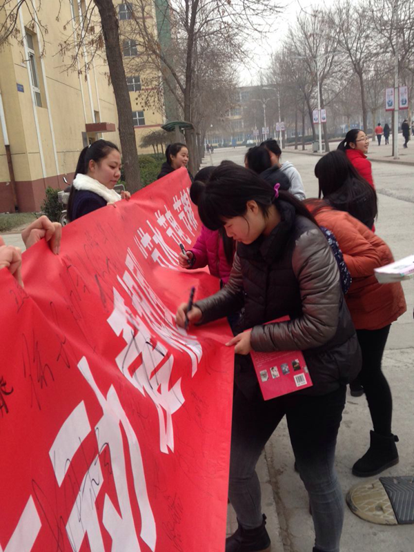 活动现场人头涌动,同学们纷纷在横幅上郑重的签上自己的名字,表达他们对本次活动的认可与支持。“历览前贤国与家,成由勤俭败由奢”。这是历史上的有识之士从家族兴衰、社稷兴亡、朝代更替的无数经验教训中得到的一条深刻警示。节约是我们民族世代相传的精神财富,也是我们这个民族百折不挠、生生不息的力量源泉,是世代中国人所崇尚的美德。我们应该继承和发扬革命的优良传统,勤俭节约,艰苦奋斗,做到节约用水、节约用电、节约用纸、节约粮食,从小事做起,从现在做起。