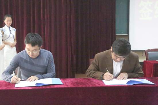 院长刘更新与总经理王嘉蕾共同签署了校企合作协议。党委书记郝锁来与王嘉蕾总经理代表双方互授牌匾。