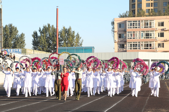 伴随激昂的运动员进行曲,国旗、校旗首先进场,各班级运动员代表及裁判员代表组成的方阵紧随其后。他们迈着整齐的步伐,喊着嘹亮的口号,精神抖擞地依次入场,激情满怀、斗志昂扬地走过主席台。