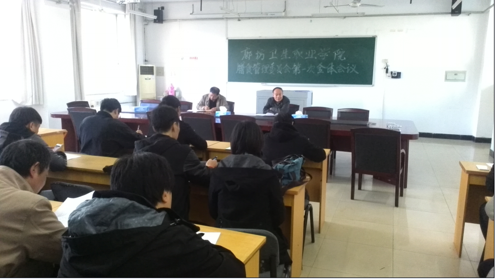 2014年11月6日下午四点,后勤处牵头组织召开了我院食堂膳食管理委员会第一次会议,学院党委委员、副院长孙爱国及办公室、教务处、学生处、后勤处、财务处、工会等相关科室主要领导、学生会主席、教务处推荐的李玉明等六名教师代表、学生处推荐的郑志莹等六名学生代表、食堂管理员、食堂经营者共计32人参加了会议。