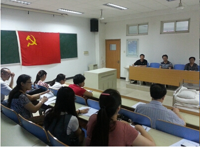 2014年6月26日下午两点十分,第一护理示教室里,教务系统综合党支部的党员面对鲜红的党旗,高举右手重温入党誓词,也拉开了组织生活会的序幕。