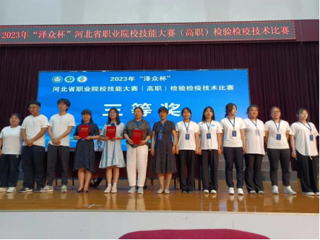 6月10日至11,2023年“泽众杯”河北省职业院校技能大赛(高职)检验检疫技能比赛在沧州医学高等专科学校举办。我院医学技术系党总支书记梁雍率领医学检验技术专业两个团队参赛,并分别取得二等奖、三等奖的好成绩。
