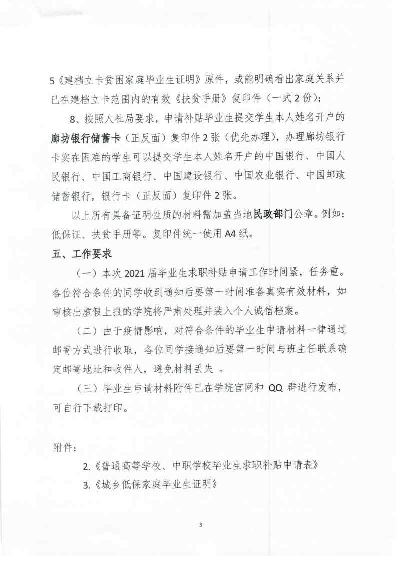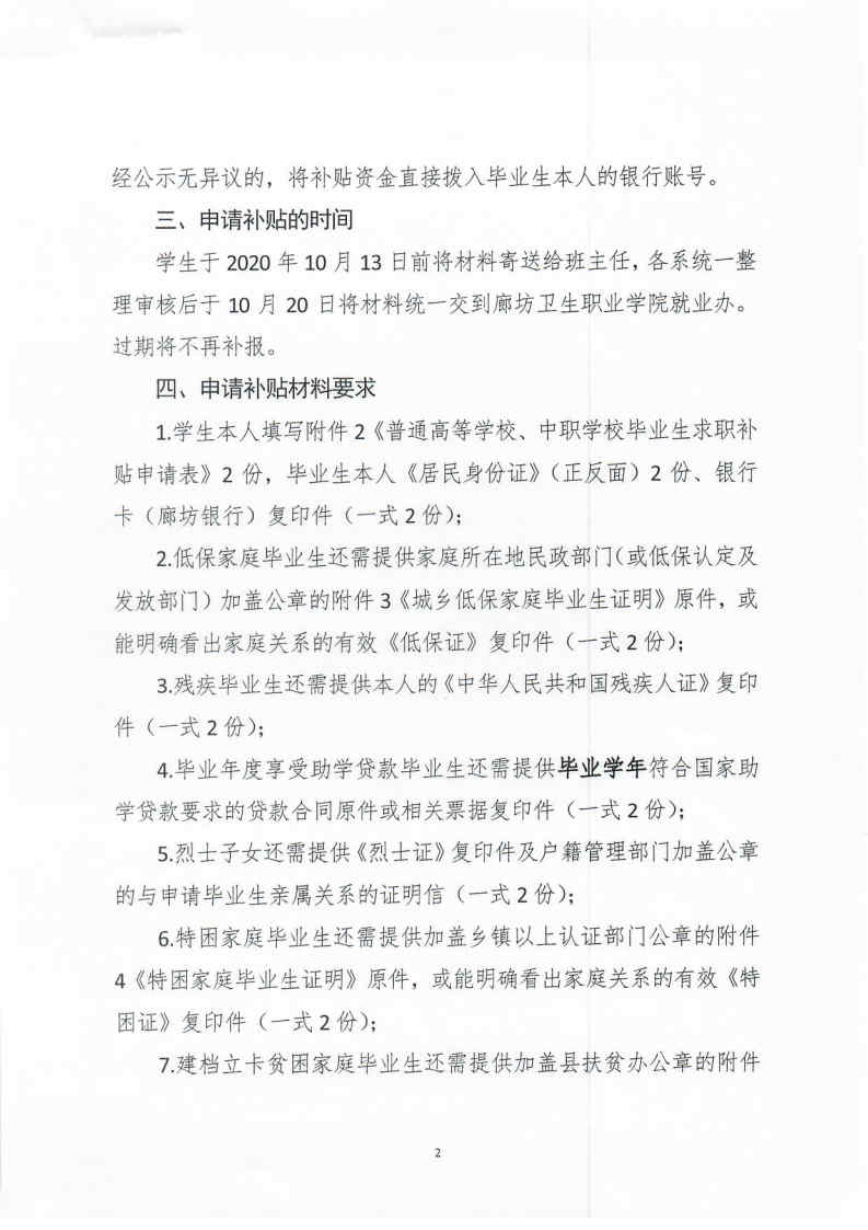 廊坊卫生职业学院关于2021届毕业生一次性求职补贴申报工作的通知