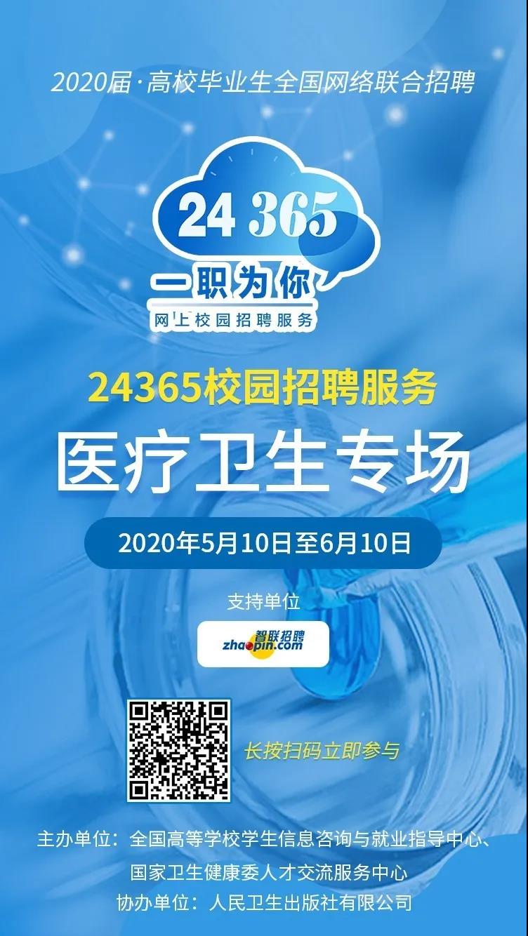 为做好医学类毕业生就业信息服务工作,满足医疗卫生行业人才需求,教育部、国家卫生健康委自5月10日起共同举办“24365校园招聘服务”医疗卫生专场招聘,目前已汇集医疗机构、医药企业500余家,包括国药、诺华、同仁堂等知名企业积极参与招聘。