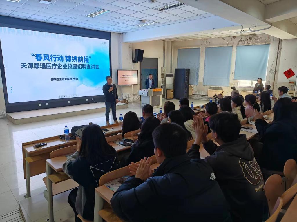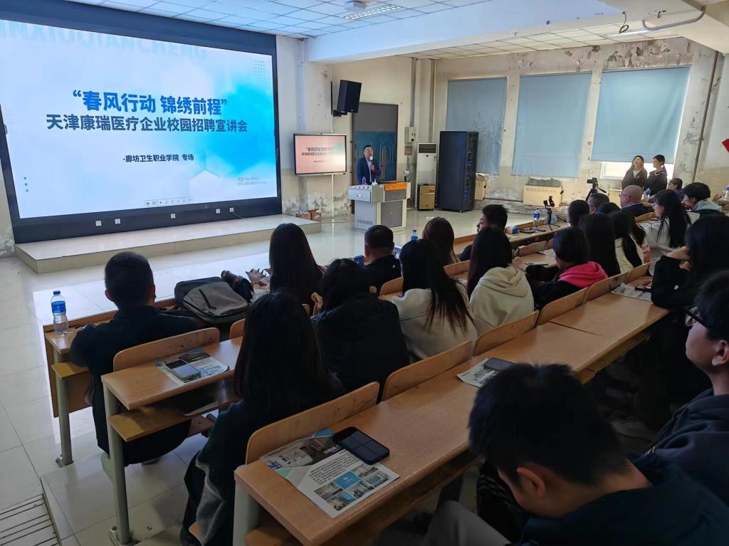 3月14日,我院在阶梯教室举行了以康复治疗技术专业、护理为主的专题宣读,宣讲企业是锦程科技-康瑞医疗管理有限公司,企业主要针对我院康复和护理专业即将实习的学生,学院招生就业办主任武刚同志及学院近200名学生参加宣讲。