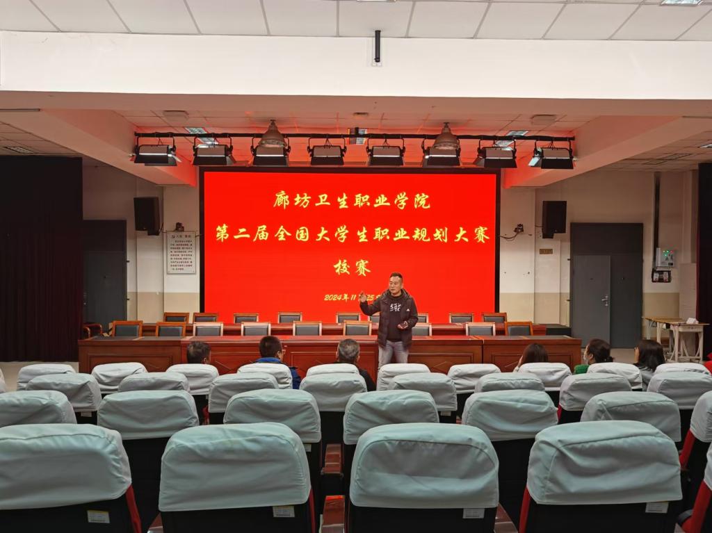 按照《教育部关于举办第二届全国大学生职业规划大赛的通知》和《河北省教育厅关于做好第二届全国大学生职业规划大赛校赛、省赛组织工作的通知》部署,为进一步完善我院职业生涯发展教育和就业指导体系,教育引导在校大学生结合专业学习和社会实践更好地成长成才,及早做好就业准备,以择业新观念打开就业新天地,促进高质量就业, 我院于2024年11月25日举办第二届全国大学生职业规划大赛校赛,共17名选手进入校赛决赛。