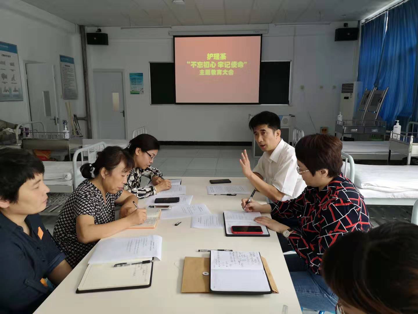 为进一步落实中央、省、市和学院关于开展“不忘初心、牢记使命”主题教育的安排部署和通知要求,9月19日中午,护理系组织召开 “不忘初心、牢记使命”主题教育大会,护理系全体教职工参加。