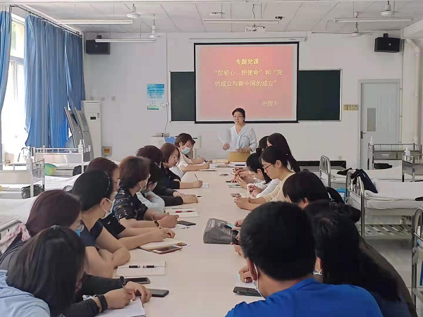 专题党课wei绕“忆初心,担使命”和“党的成立与新中国的成立”开展,张少云书记从不忘党的初心,传承红色基因;不忘职责使命,牢记党的嘱托,通过回顾中国共产党近百年的光辉历程,教育引导支部党员教师铭记党员身份,坚决做到:一是不忘入党初心、牢记使命;二是不忘职责使命,要紧跟学院党委的脚步,以求真务实的工作作风推动护理系工作的开展。
