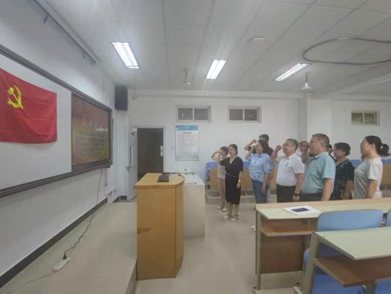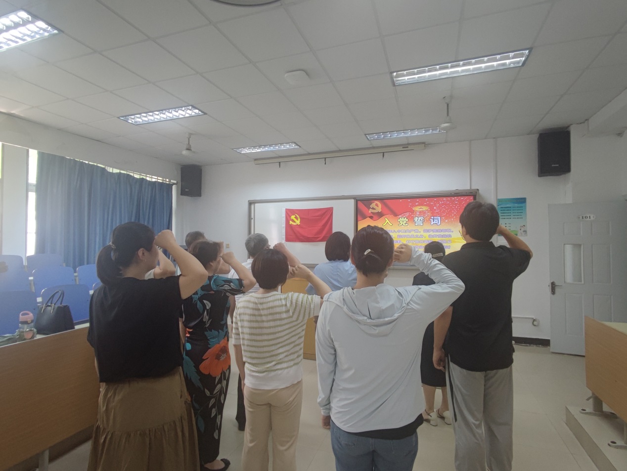 活动中,全体党员面向鲜红的中国共产党党旗,举起右拳,重温入党誓词,“我志愿加入中国共产党,拥护党的纲领,遵守党的章程,履行党员义务,执行党的决定,严守党的纪律,保守党的秘密,对党忠诚,积极工作,为共产主义奋斗终身,随时准备为党和人民牺牲一切,永不叛党。”党旗下的铮铮誓言,表达着党员教师们对党忠诚,矢志不渝的信念。