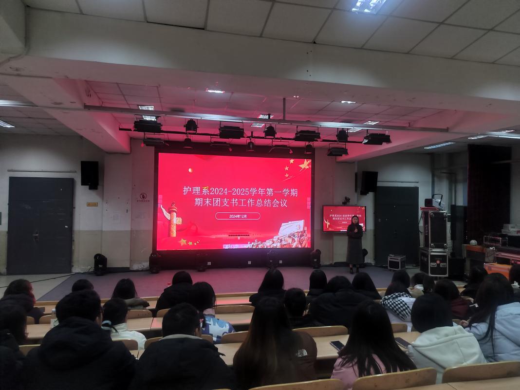 12月末,为强化护理系学生团组织建设,提升团支书工作能力,促进团支部工作高效开展,护理系学工科在阶梯教室举行了2024-2025学年第一学期期末团支书工作总结会议,由护理系学工科刘老师担任主讲。