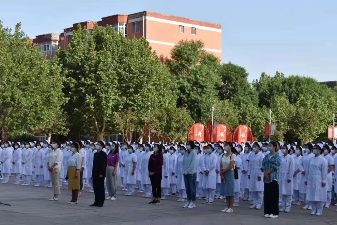 蓝天白云下,五星红旗迎风招展。护理系团总支学生会于2021年5月24日组织在迎新广场举行升国旗仪式。出席此次升旗仪式的领导有党委委员、党政办公室主任朱文会,护理系党总支书记张少云,护理系学工科副科长张萍及护理系全体老师。