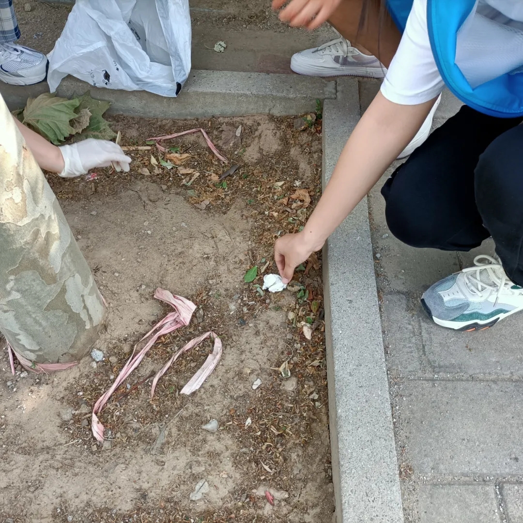蓝天白云下,同学们身穿蓝色志愿服行走在校园的各个角落,手拿着清洁工具,随身携带垃圾袋,不怕脏,不怕累,不放过每一处,积极热情又相互配合。在阳光下,滴滴汗水挂在他们勤劳的脸上,清新、明亮又闪耀像夏天里的阵阵微风整洁了校园,拂过了人心。
