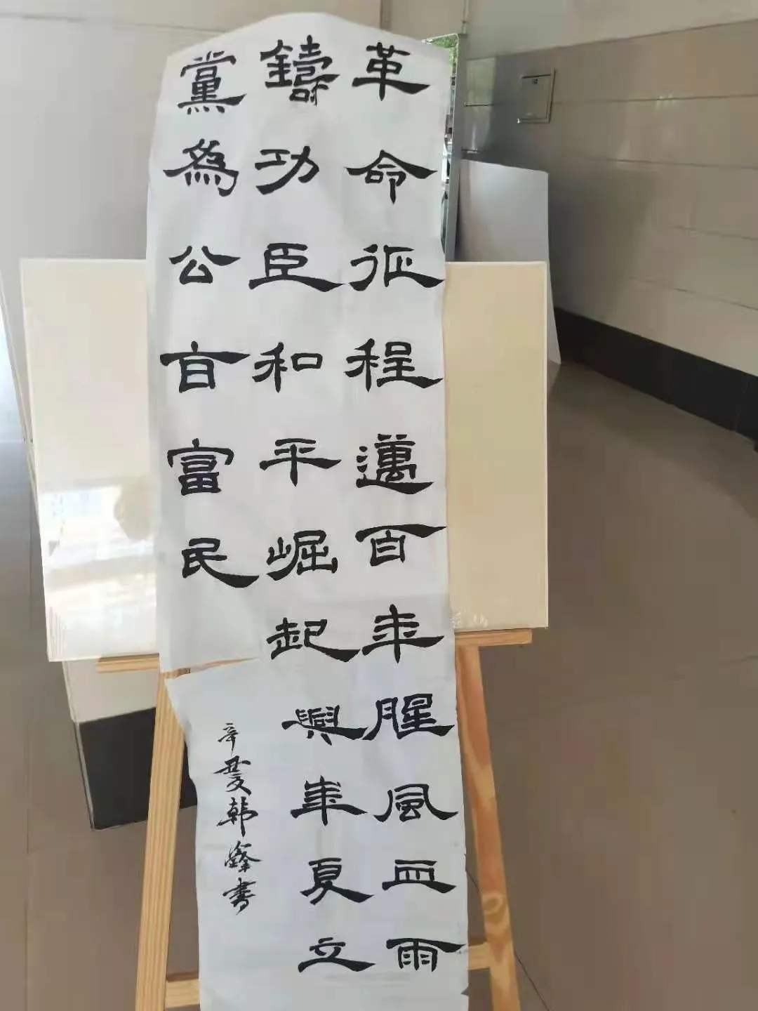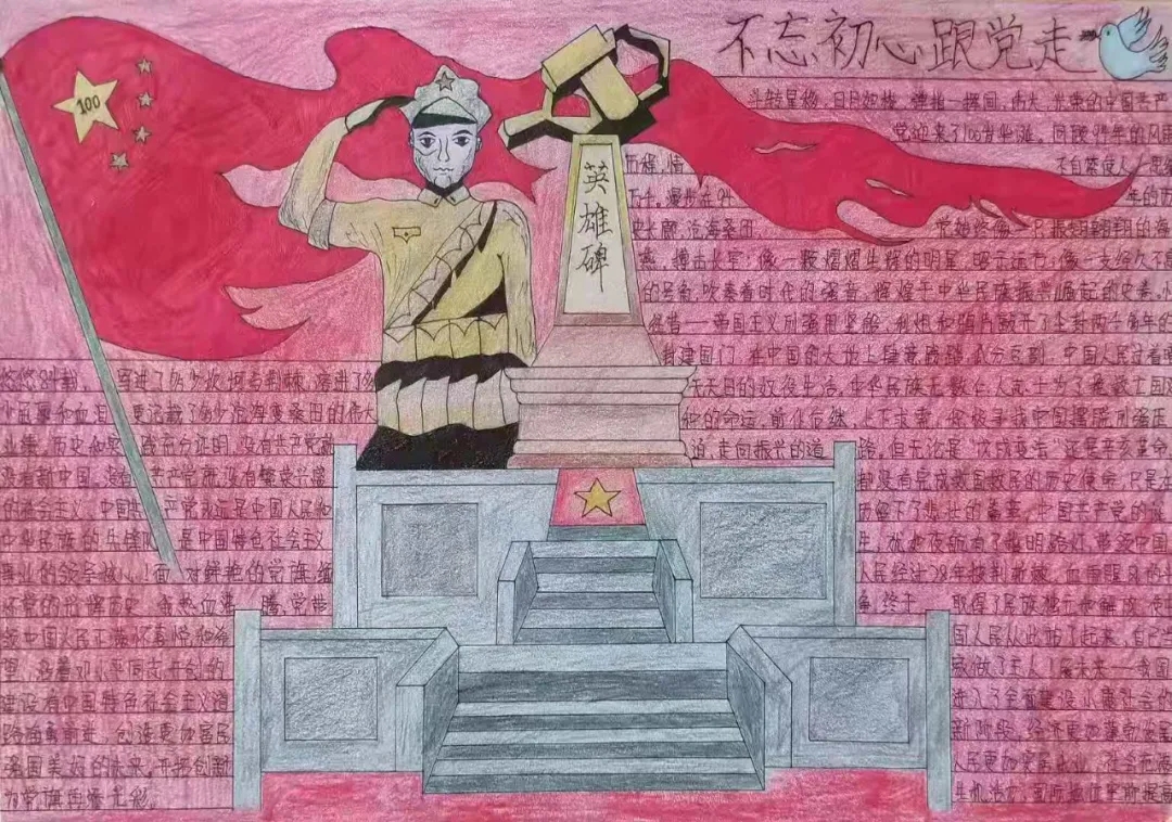 墨笔丹青,如行云流水绕素笺,我们用画笔描绘出狼牙山五壮士为掩护部队和群众撤离而在弹药用尽时跳下山崖的事迹,用遒劲有力的书法写下共产党人的艰辛历程。同学们积极踊跃参加,充分利用课下时间来提升自己的文化素养,提高对美的认知,引导学生建立正确的价值观。