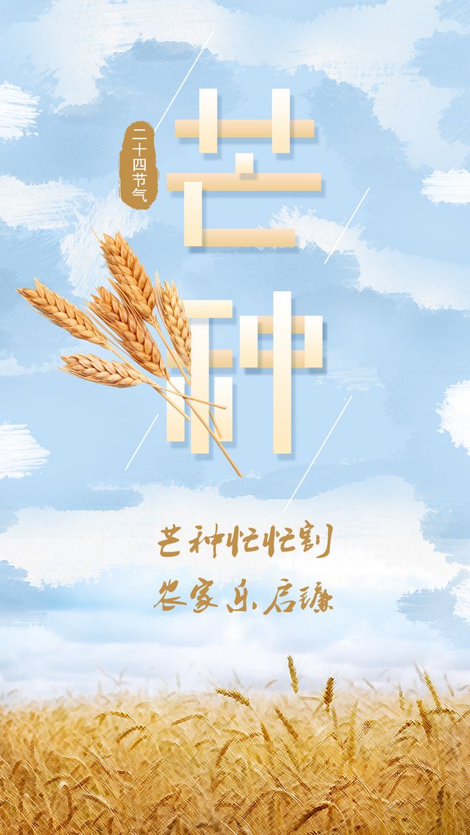 芒种时节麦飘香,颗粒归仓丰收忙。汗水换来硕果壮,勤劳使得幸福长。风吹麦成浪,蝉鸣夏始忙,芒种是夏季的第三个节气,预示着仲夏时节的开始。“芒种”又称“忙种”,是丰收的季节。