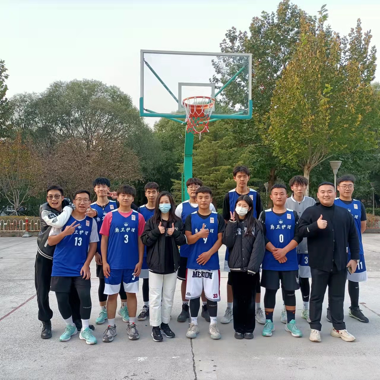 为了丰富大学生的课余生活,提高大学生的综合素质,增强团队精神和集体凝聚力,促进各系之间的交流,展现大学生积极向上的风ò,护理系于2021年10月20日在篮球场参加篮球比赛。