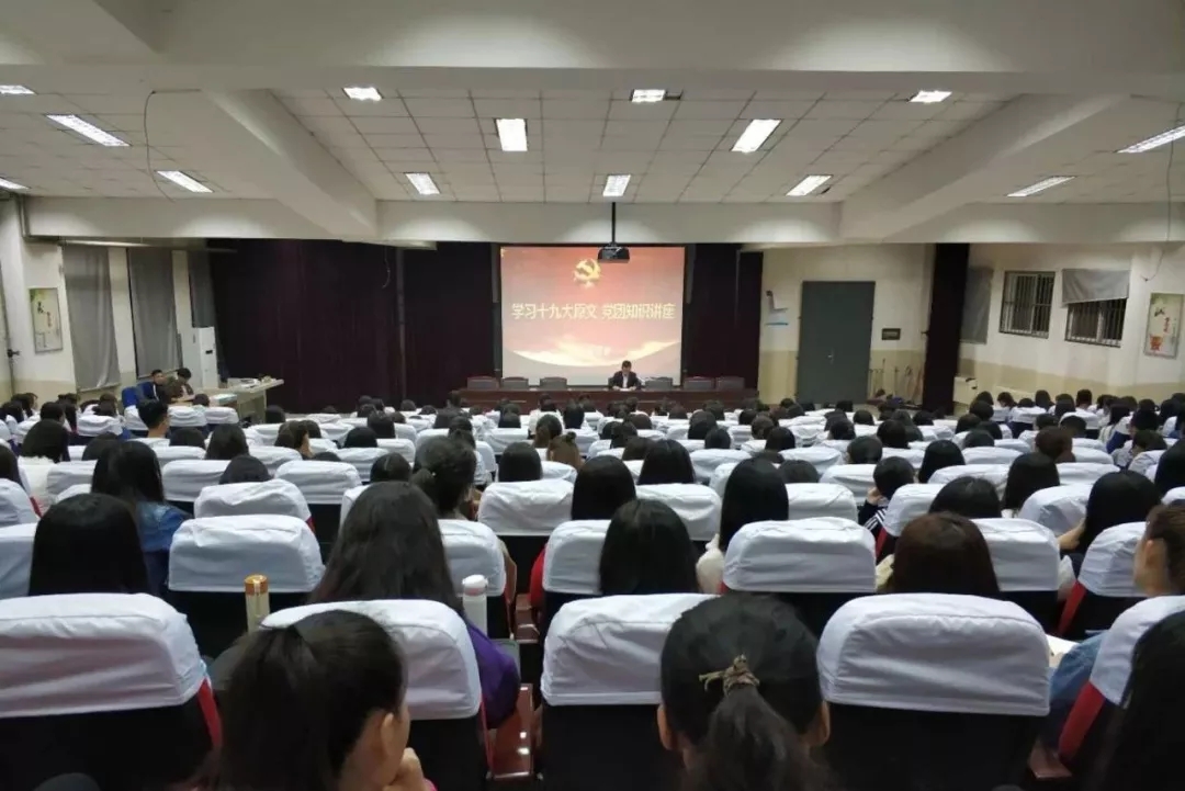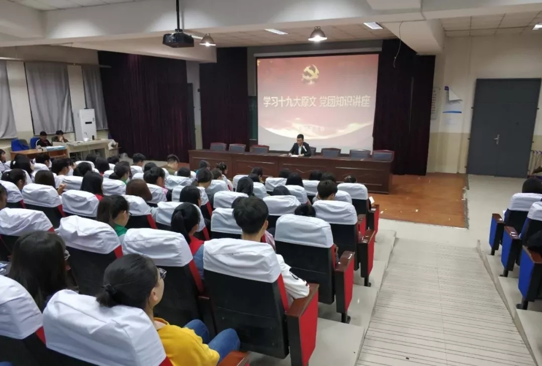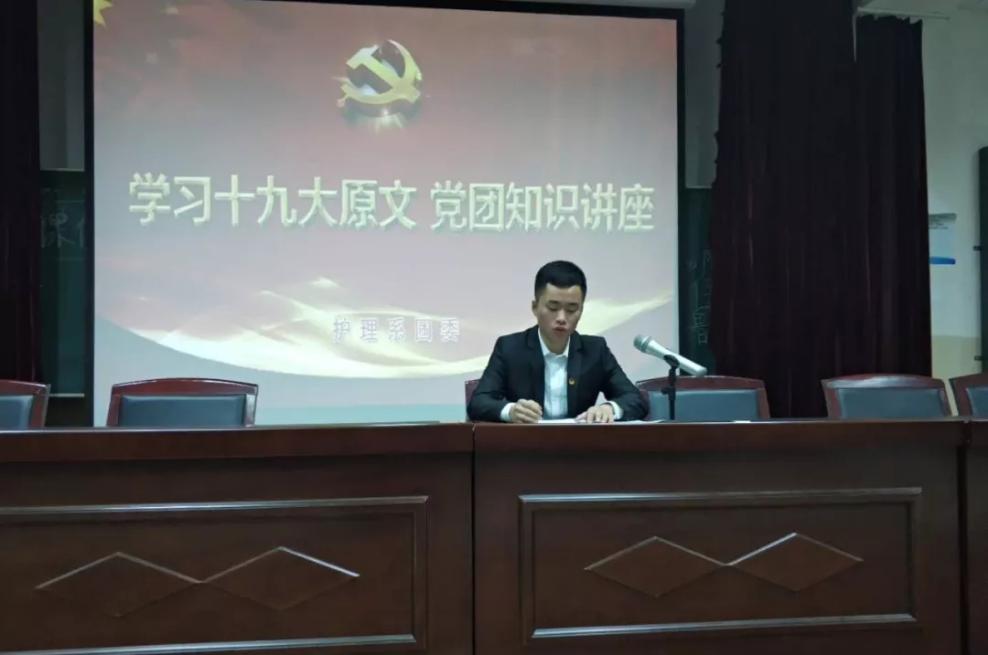 迈入新时代,风起扬帆正当时。青年潮头立,接力奋斗中国梦。党的十九大描绘了新时代的宏伟蓝图,给新时代的青年指明了前进方向,为了进一步让同学们深入了解十九大内容,4月2日晚自习护理系团委副书记刘德平同学在学术报告厅展开了学习十九大原文的党团知识讲座,由护理系学生会主席曹轲宇主持,护理系班主任张倩颖老师参加,护理系学生会干部以及各班学生代表及积极分子认真进行聆听。