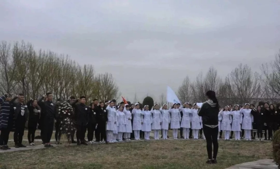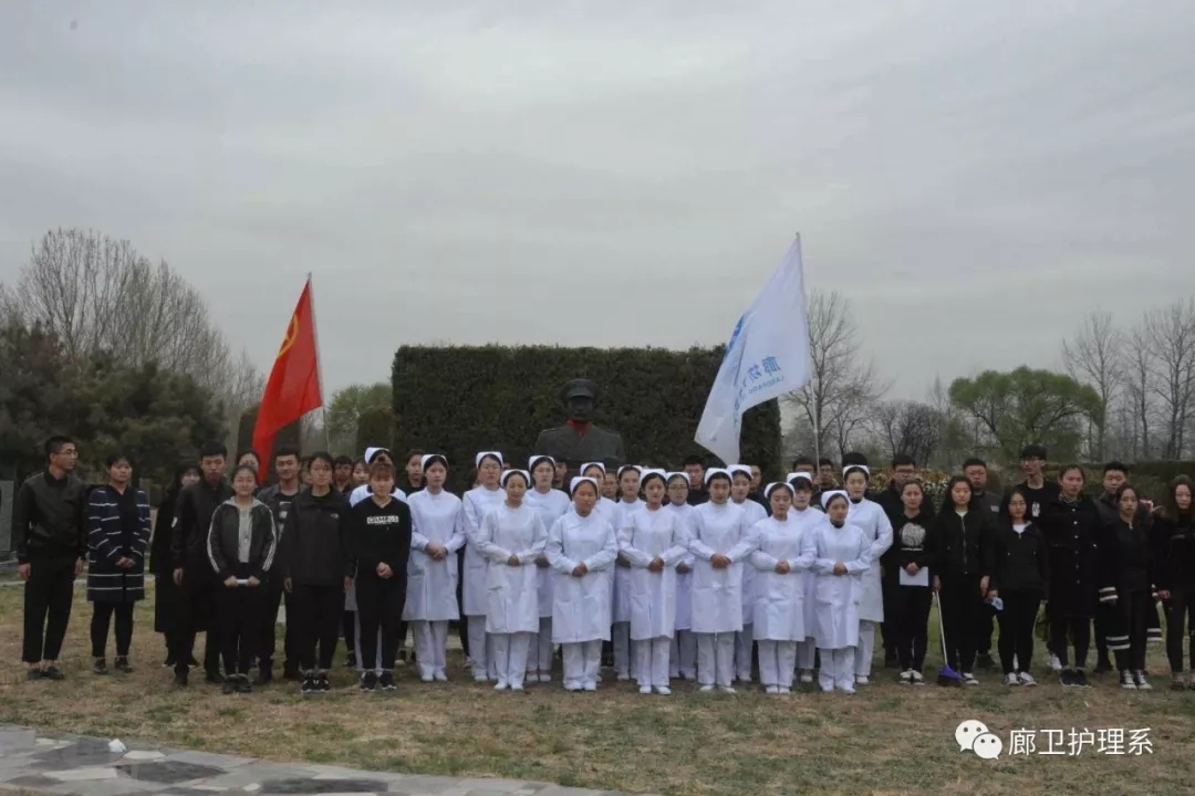 为了缅怀革命先烈的丰功伟绩,弘扬革命优良传统,在清明节到来之际,廊坊卫生职业学院开展“缅怀先烈,发奋读书”主题活动,对院全体学生进行革命传统和爱国主义教育,并于4月3日下午由学管中心学生工作办公室刘亚萍老师携手院团委、院学生会、院社团以及五个系的学生代表前往我市万桐墓园进行清明扫墓、纪念活动。同学们怀着对革命先辈无比崇敬的心情,祭奠了百岁将军—孙毅前辈,其中护理系16名同学参加了此次活动。