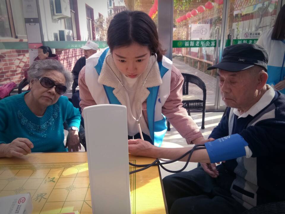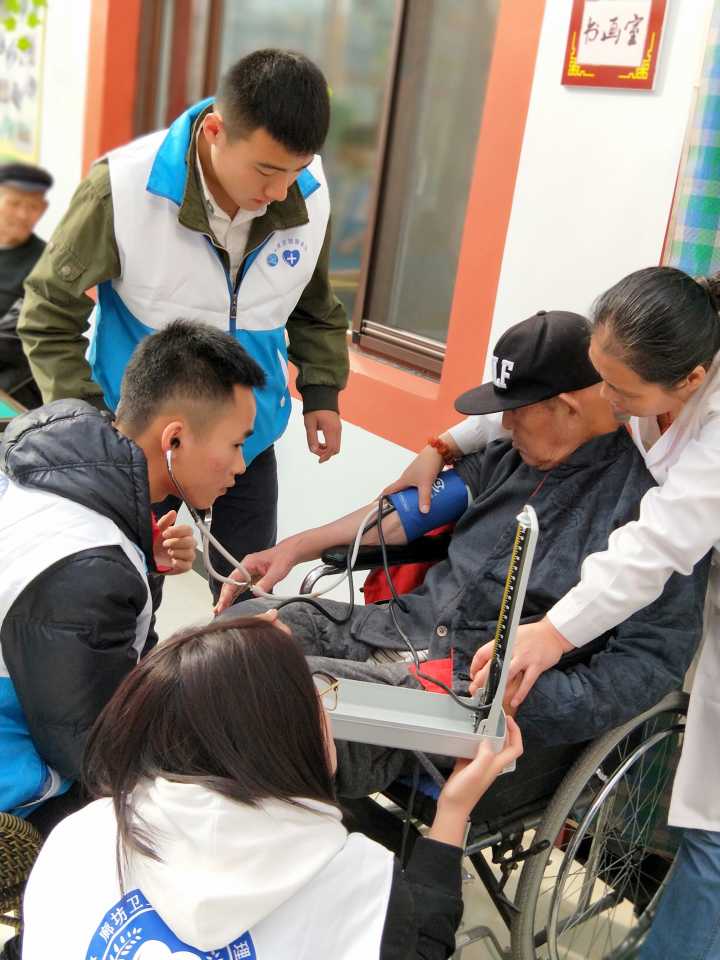 2017年11月11日,阳光明媚,护理系天使志愿服务队15名青年志愿者和往常一样准时走进廊坊福源老年公寓,为老人们进行基础健康检查,测血压、脉搏和心率,向老人们传授健康保健知识。虽然只是简单的推着老人出去晒晒太阳、拉拉家常、给老人做做按摩、打扫卫生,却让更多处于黄昏时段的老人感受到社会上最单纯的温暖让他们不再感到孤独和无助,燃起他们对生活新的希望与乐趣。