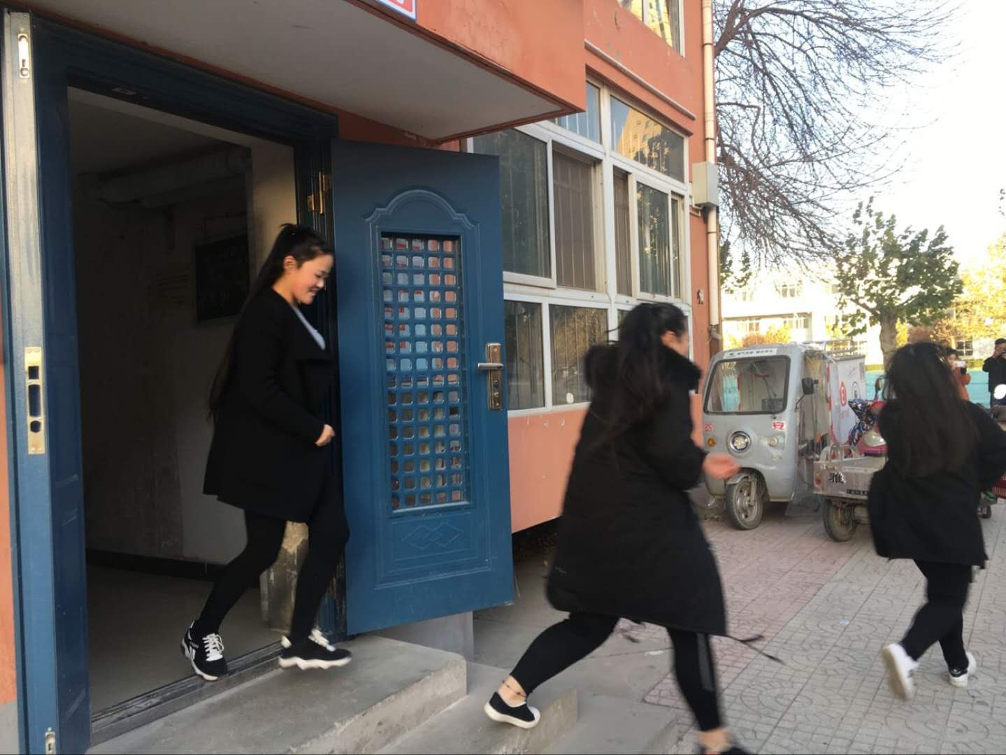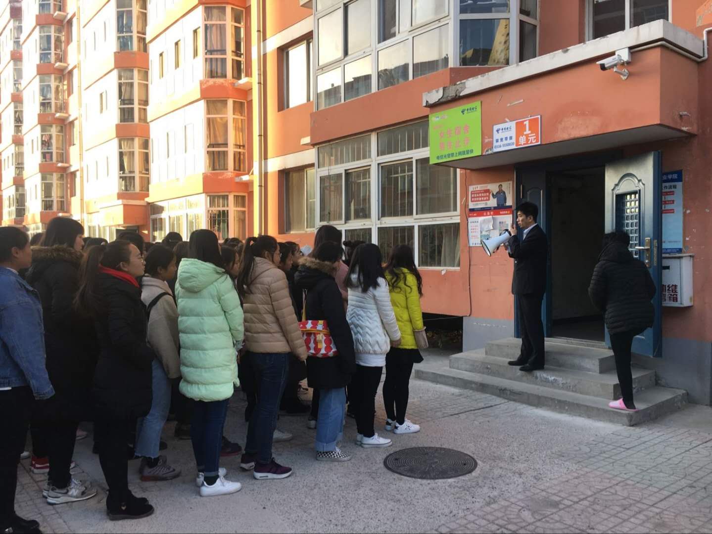 下午四点,护理系应急疏散演练总指挥岳东华同志下达了“宿舍楼发生火灾,请同学们立即撤离”的命令。护理系各位班主任老师立即到达指定岗位,引导宿舍内、楼道内学生快速疏散,沿着指定的疏散通道快速前进,有序撤离到学校北操场的安全地带,随即清点人数,并向演练指挥部汇报,一号公寓楼全体师生170余人全部安全疏散完毕,共用时2分36秒,整个逃生过程迅速而有序。
