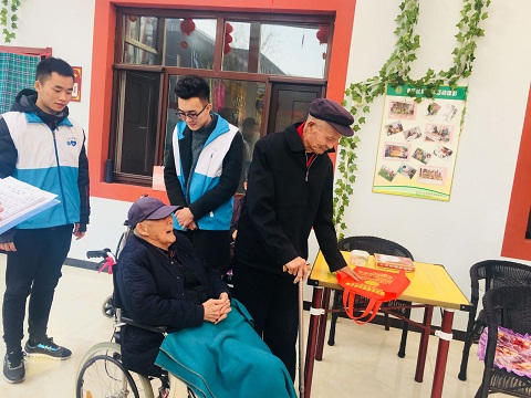 到达目的地后,恰逢赶上老人们正在做晨操,志愿者成员们纷纷参与到其中,和老人们一起愉快的做早操。早操结束后志愿者们和老人唠嗑,聊他们那个年代的故事,使气氛马上活跃了起来,欢声笑语充满了整个敬老院。老人们是经过岁月风霜的人,有很多过去的故事对后辈们讲述,同学们认真的听着老人们的故事,每一位老人的脸上都展现出快乐的笑容。紧接着,我们团队有同学陪老人下象棋,也有的拉着老人的手询问生活情况谈谈心,一起大笑,老人们说有了这些孩子的陪伴,感到不孤单了。大家在与老人们的相处之中,感受到了孤寡老人对于亲情以及来自社会的关心的渴望。
