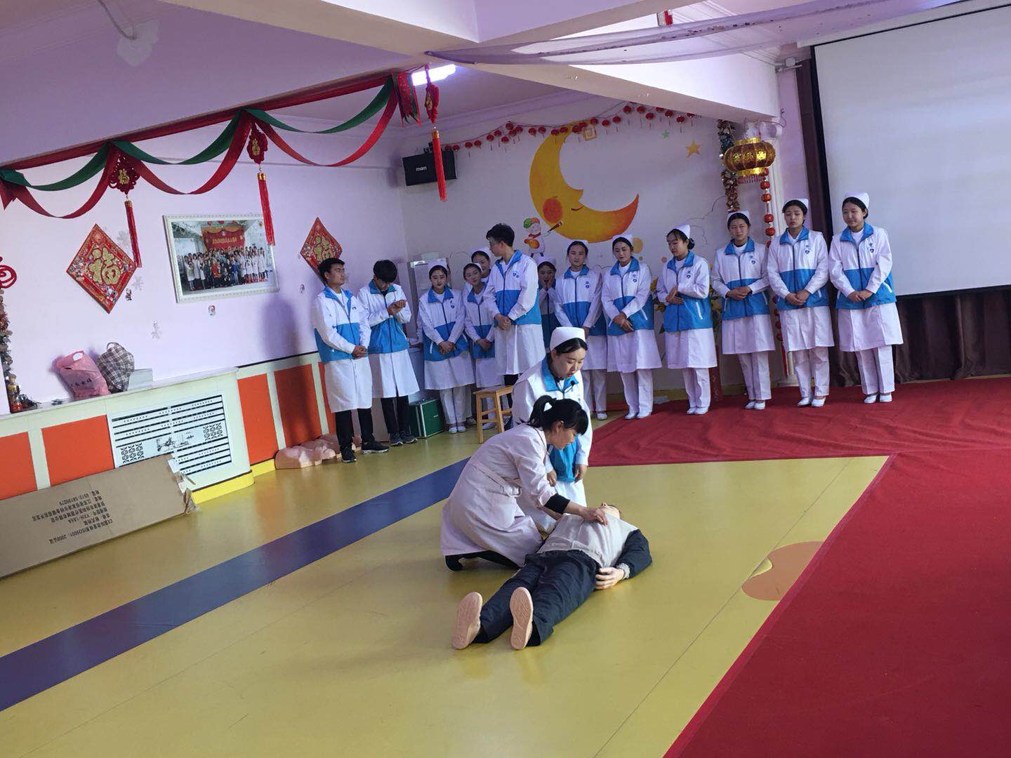 年少的脚步跨过岁月的台阶,稚嫩的心灵登上青春的舞台。廊坊卫生职业学院护理系天使志愿服务队在护理系刁焕林老师的带领下以“演示急救知识,凝聚爱心力量”为主题于2018年3月29日前往廊坊市社会福利院进行了急救表演活动。