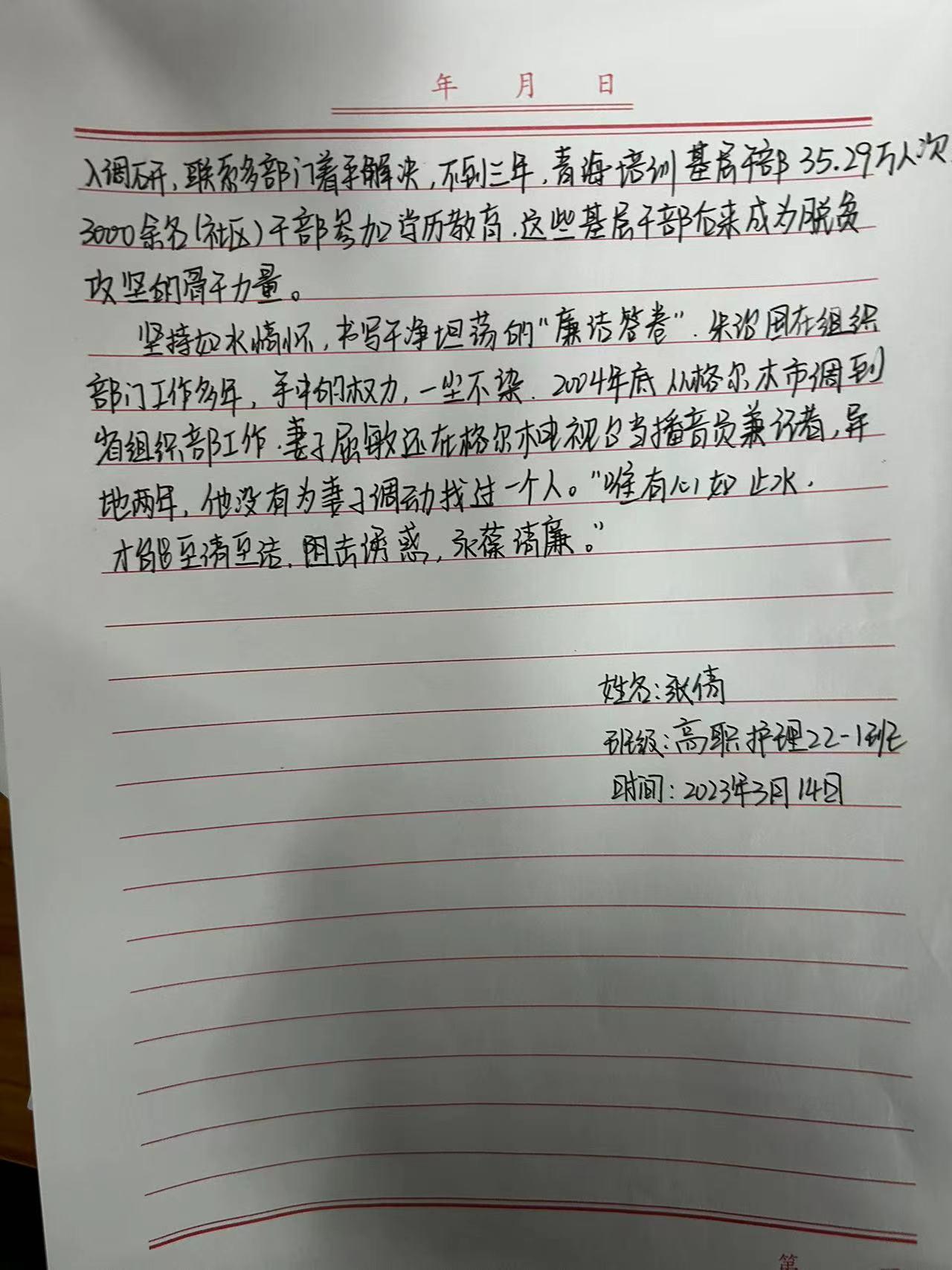 中央组织部印发《关于追授朱治国同志“全国优秀组织工作干部”称号的决定》,号召全国组织系统开展向朱治国同志学习活动。护理系领导为响应号召组织护理系各班于2023年3月14日开展“向朱治国同志学习活动”主题班会及小组讨论。