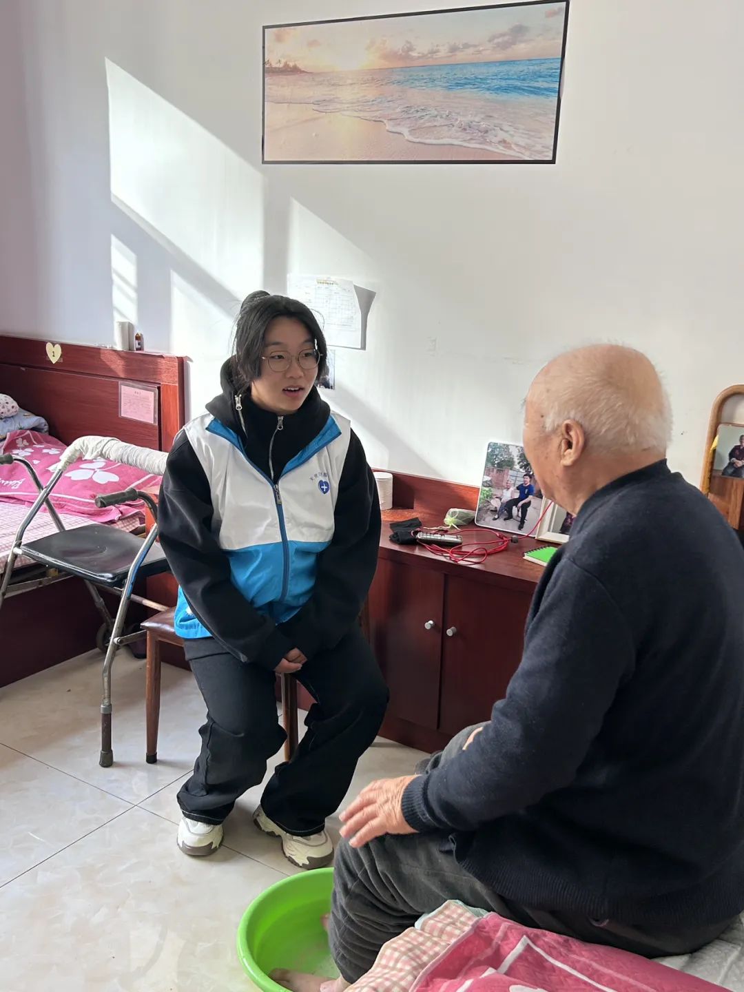 活动现场,分工有序,敬老院里萦绕着欢声笑语。在整个志愿活动开展期间,志愿者们陪老人们拉拉家常、讲讲笑话,讲讲养生小知识,给老人们带去欢笑和快乐。