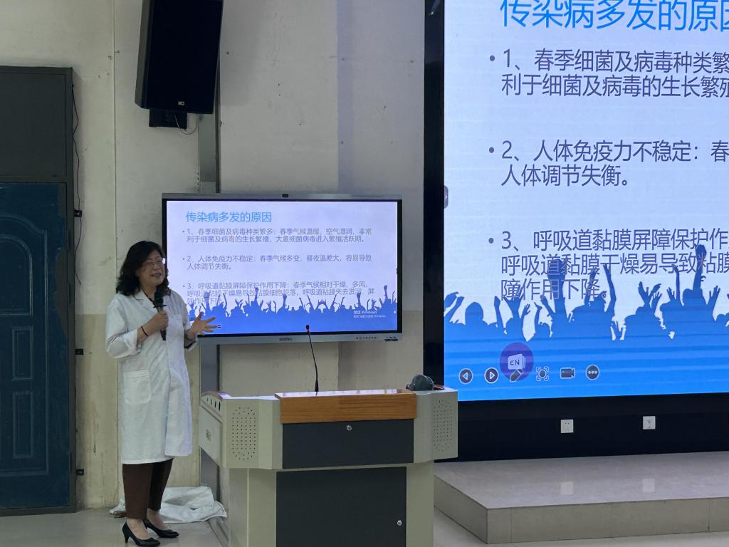 讲座中,王玉英老师从春季传染病概述、环境卫生与消毒措施、疫苗接种与预防措施、合理膳食与营养补充、锻炼身体增强体质的重要性及个人卫生习惯培养等方面,理论与实际相结合,深入浅出地进行了科普讲解,引导护理系学生们正确认识春季传染病,养成良好的卫生生活习惯,树立积极健康的生活观念。