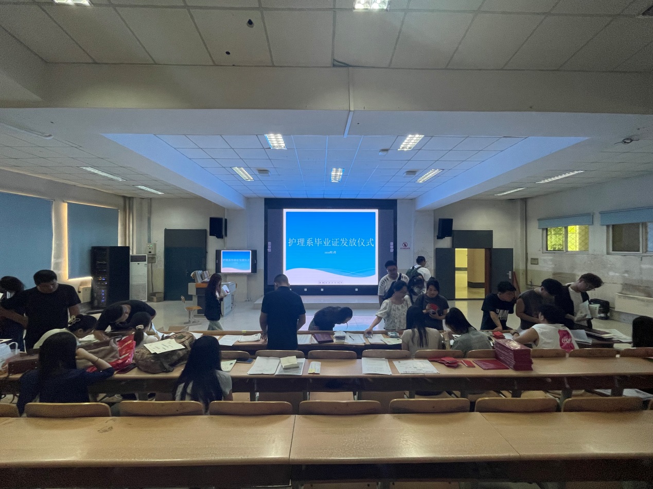 扬帆起航,筑梦未来。7月3日,护理系学工科组织21级5名辅导员为2024届946名毕业生发放毕业证。护理系党总支书记张少云、护理系主任柴润国和护理系学工科副科长张萍现场组织毕业证书发放事宜,向护理系毕业生送上美好祝福和殷切嘱托。