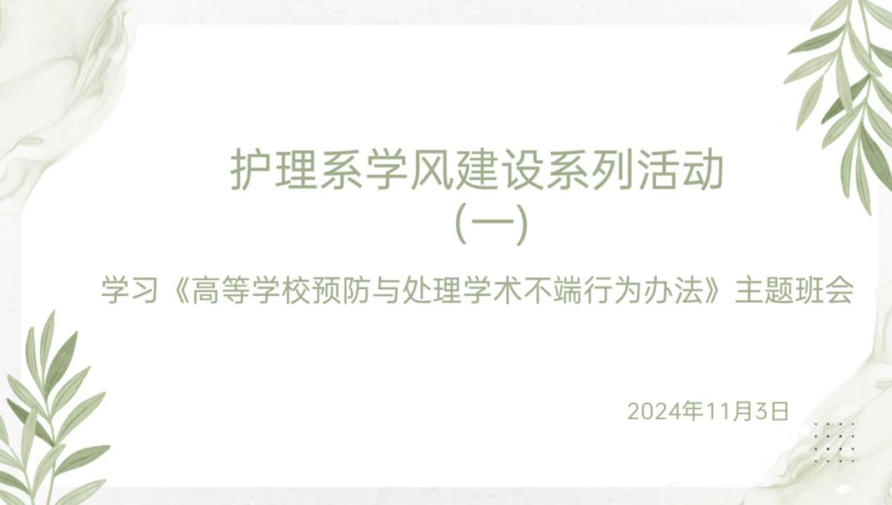 为帮助学生清晰了解学术不端行为的界定与危害,明确抄袭、剽窃、篡改等行为的严重后果,11月3日护理系团总支学生会组织各班级开展了以学习《高等学校预防与处理学术不端行为办法》为主题的班会活动。