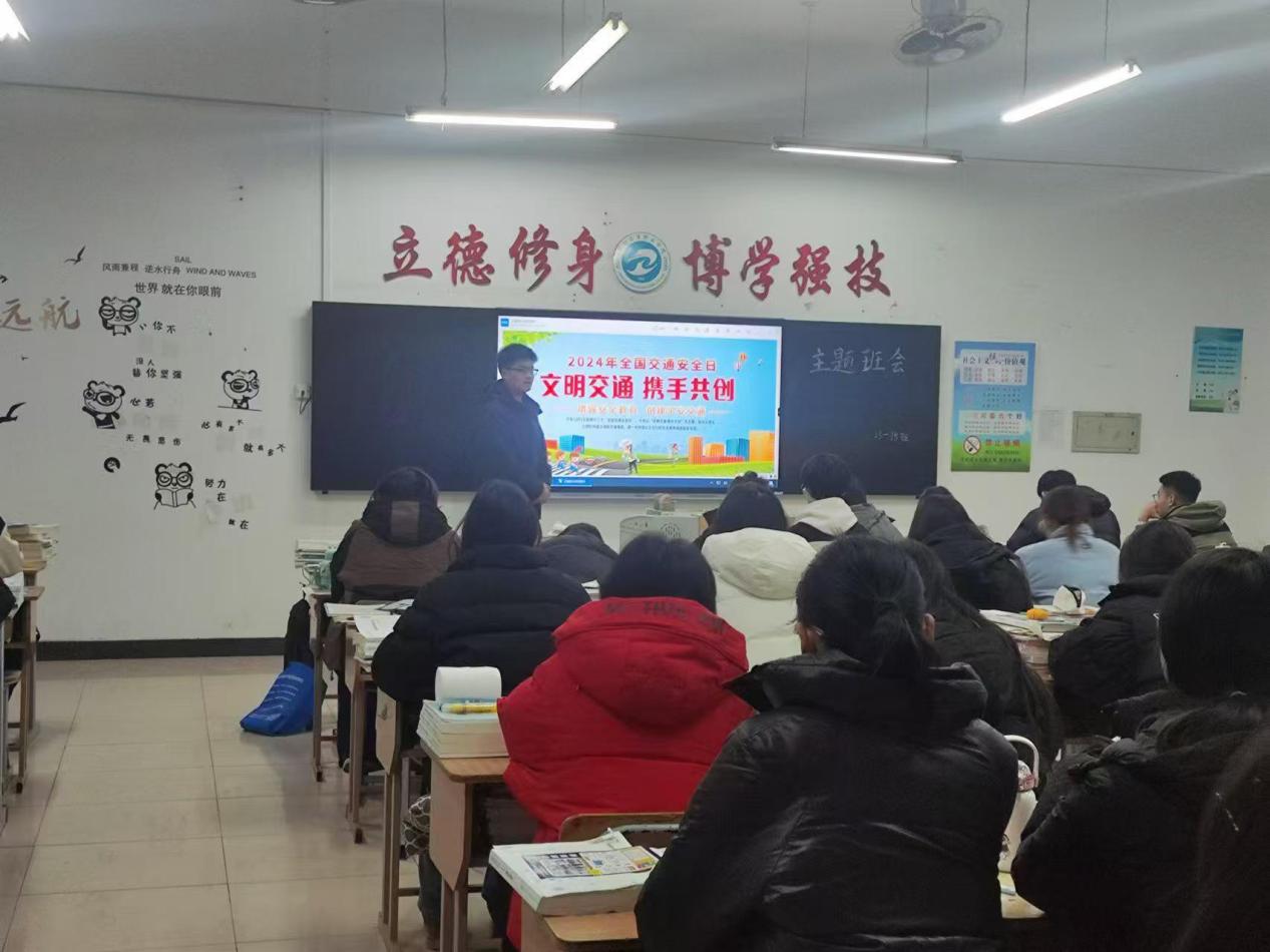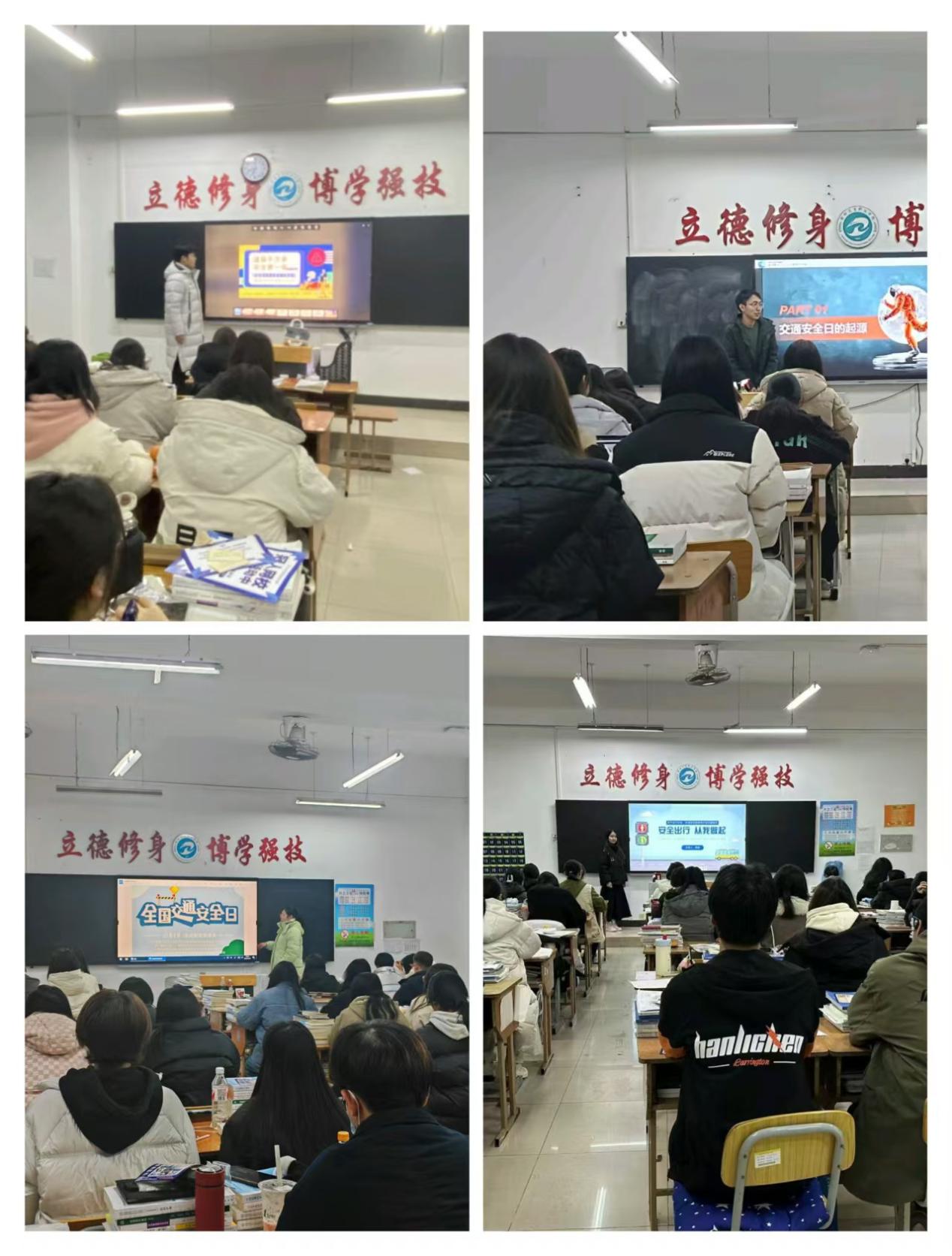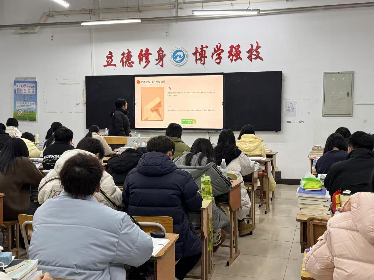 为普及交通安全知识,提高护理系学生交通安全意识,在全国交通安全日到来之际,护理系团总支学生会于2024年12月8日晚自习组织各班级开展“全国交通安全日”主题班会活动。