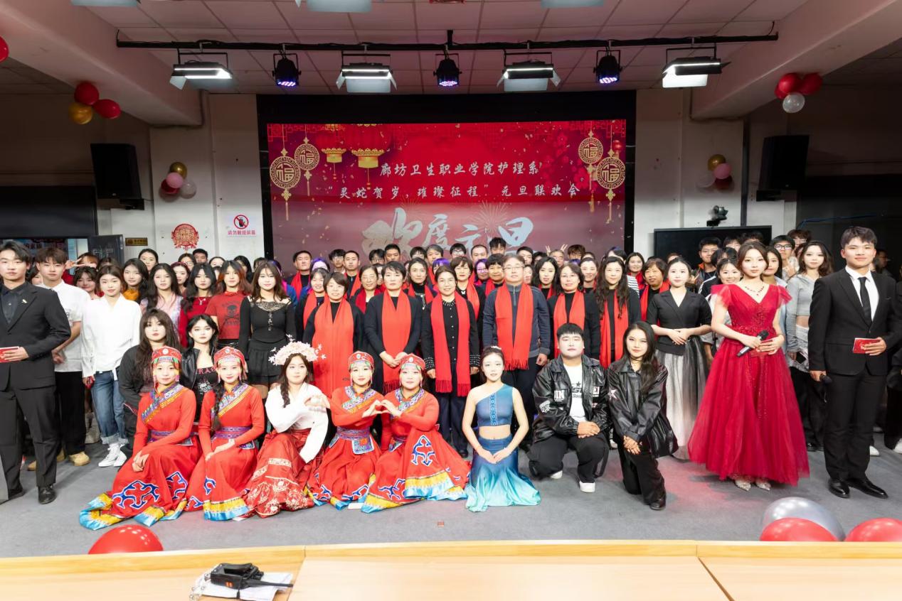 岁末之际,辞旧迎新。2024年12月26日,是毛泽东同志诞辰131周年纪念日。护理系选择在这一天举办元旦联欢会,师生一起共同回首难忘的2024年,同时展望2025年。这一日,张灯结彩,洋溢着浓郁的节日氛围,护理系师生们满怀热忱奔赴这场专属的欢乐之约,共庆元旦佳节。出席本次元旦联欢会的领导有廊坊市公安局东方大学城分局副局长孟维佳,法制大队大队长温大为,财务处处长王广海,思政部主任付立侠,医学技术系主任李二来,护理系党总支书记张少云,护理系主任柴润国以及护理系各科室的老师和辅导员老师们。