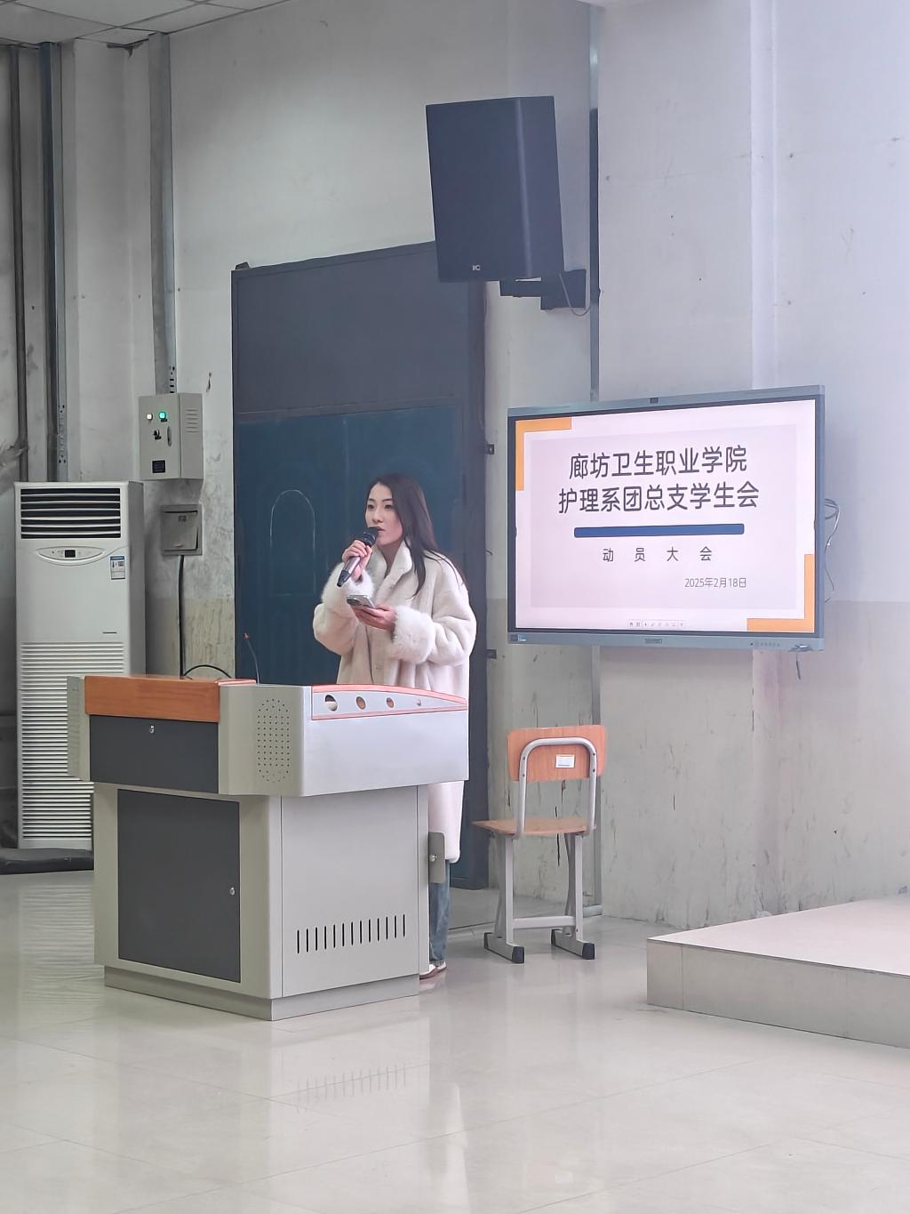为助力新学期进一步提高学生会成员的工作能力,更好的促进学生会的成员交流与合作,护理系团总支学生会于2025年2月18日在阶梯教室进行了全体学生会成员动员大会。
