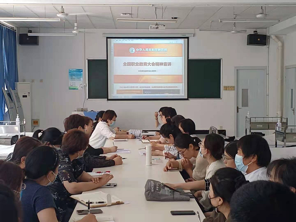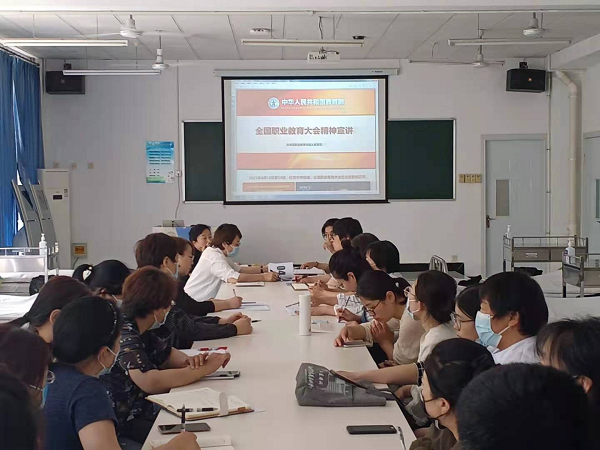 为深入学习贯彻全国职业教育大会的决策部署,近日,护理系组织全体教师在护理实验lou201召开会议,学习全国职业教育大会精神,会议由系党总支部书记张少云同志主持。
