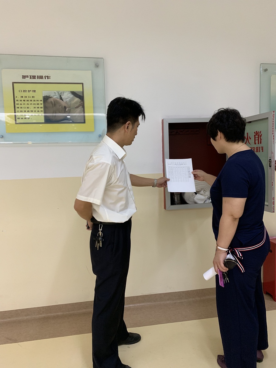 2019年9月10日上午,护理系党总支书记岳东华同志带领护理系教学科副科长刘丽红同志、实验室教师对我系实验室开展新学期安全检查,深入实验室重点安全区域,对可能产生的安全隐患场地、设施进行逐一排查,听取了实验室教师的情况介绍,对存在的问题进行记录。检查结束后,对情况汇总,列出隐患清单,及时上报。